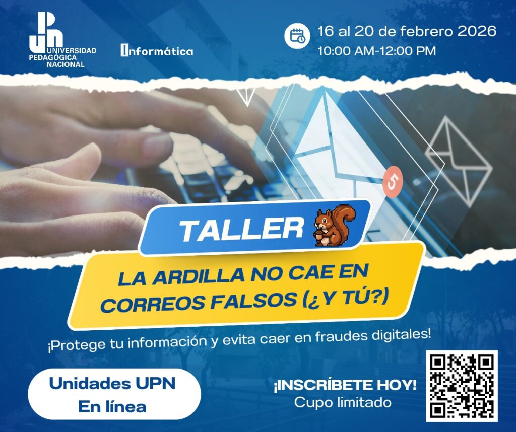 El objetivo del taller es que las y los estudiantes conozcan estrategias para proteger su información personal e institucional, así como para identificar y prevenir fraudes digitales.